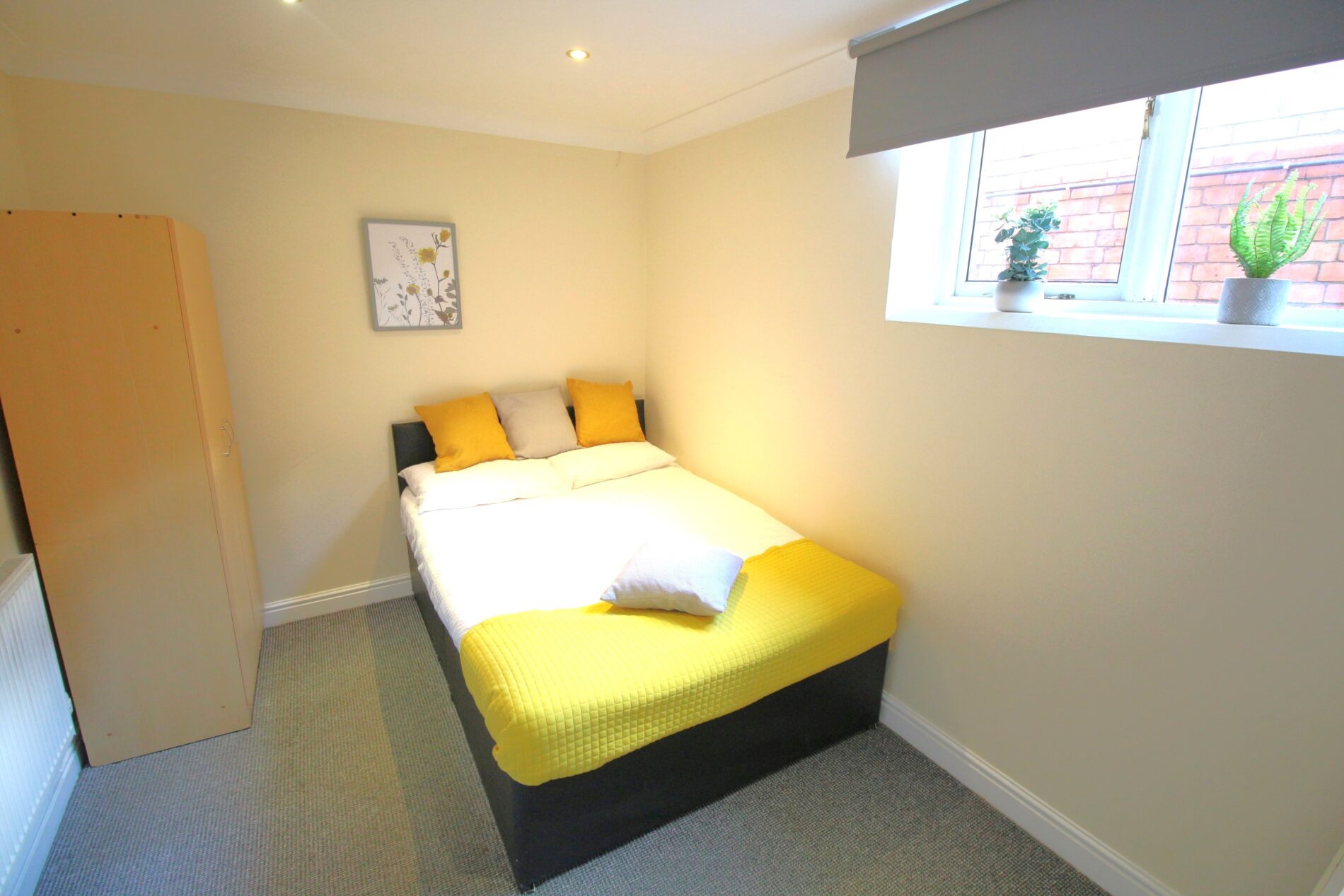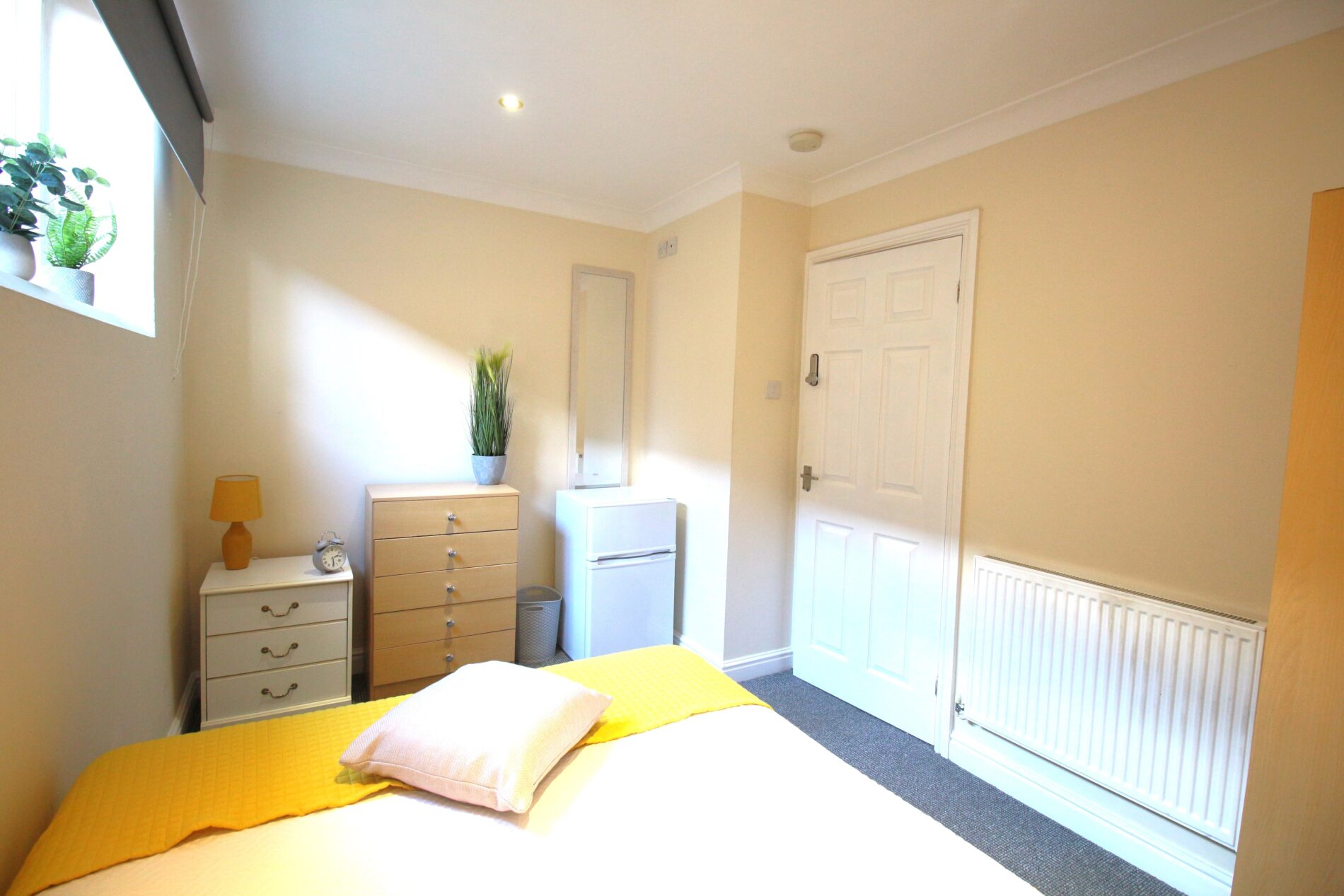 Includes: Double bed, wardrobe, bedside cabinet, chest of drawers, and a private fridge freezer
